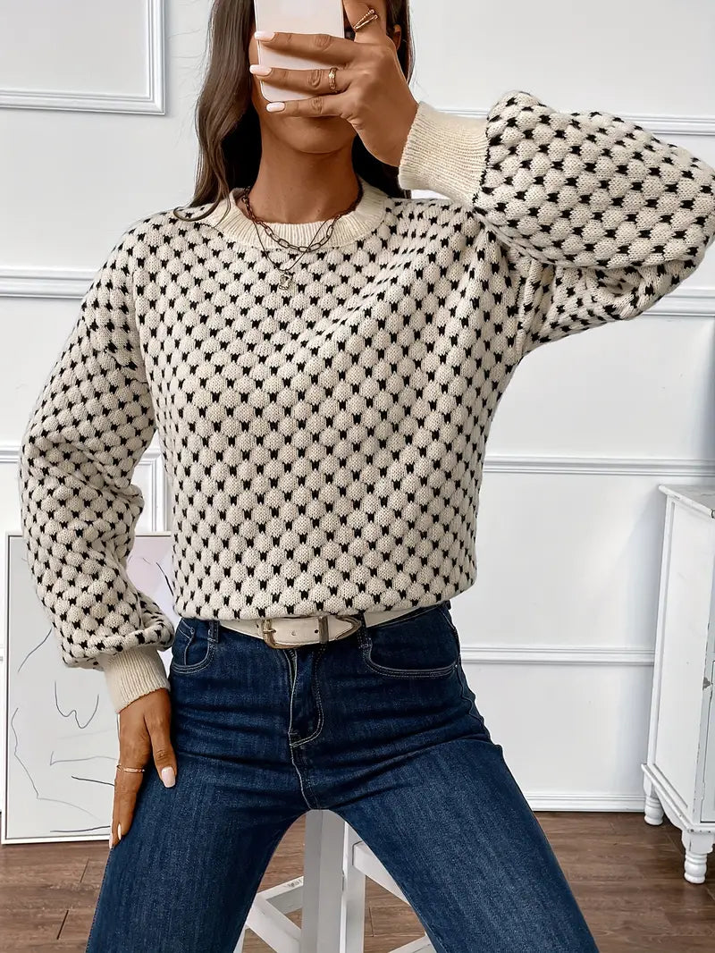 Women's Plaid Drop Shoulder Knit Sweater, Long Sleeve Casual Pullover for Fall Winter