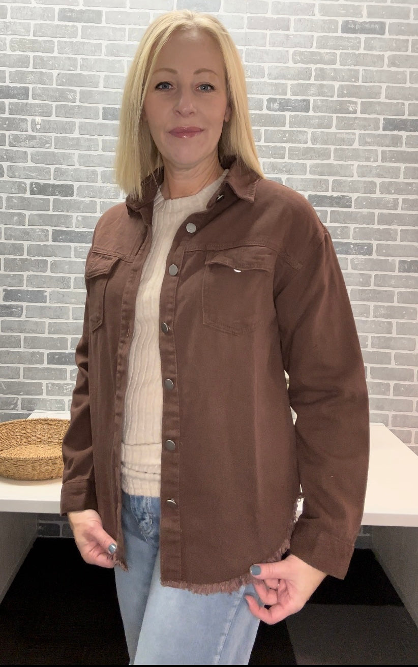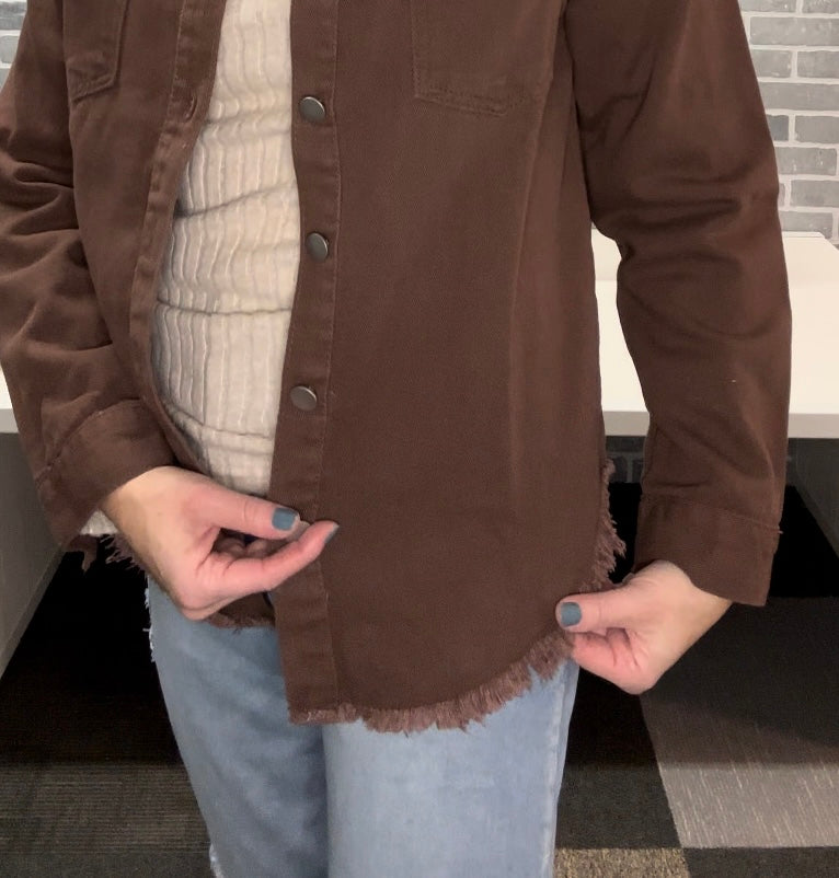 Frayed Hem Long Denim Jacket, Loose Fit Long Sleeves, Women's Lapel Denim Coat, Versatile Denim Outerwear