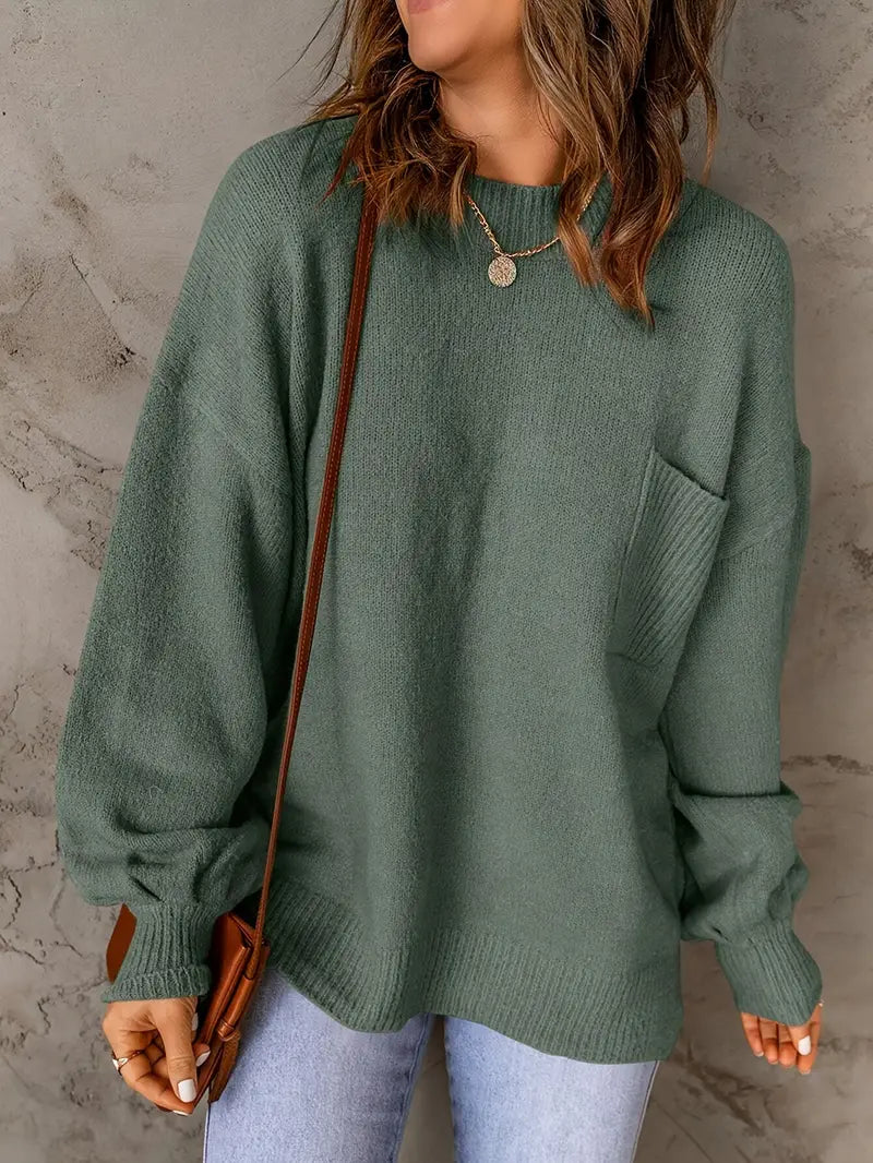 Pockets Drop Shoulder Sweater, Casual Long Sleeve Sweater For Fall & Winter, Women's Clothing