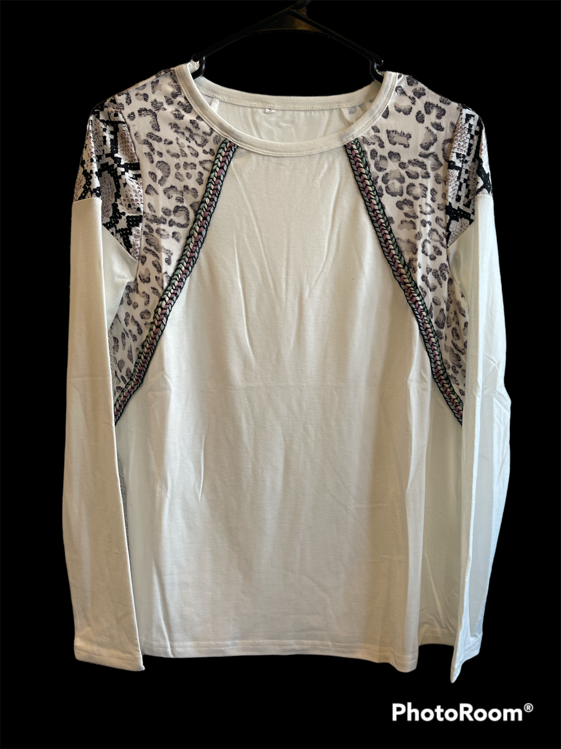 A mixture of patterns snake skin, cheetah, and some trible stitching