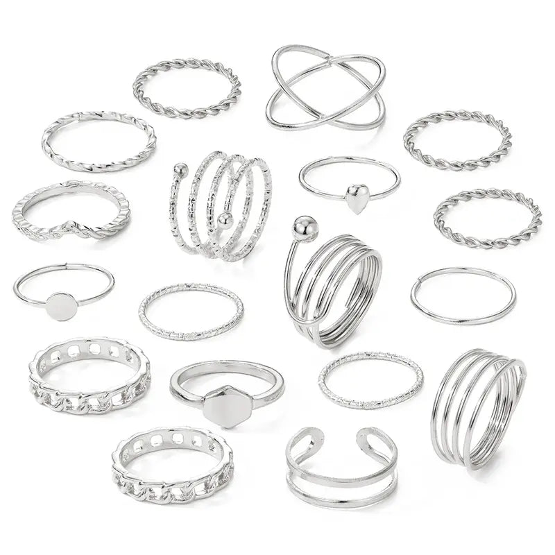 6pc trendy chain/intertwine design mix and match stacking rings comes available in silver and gold options
