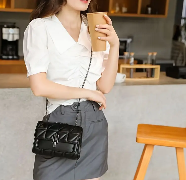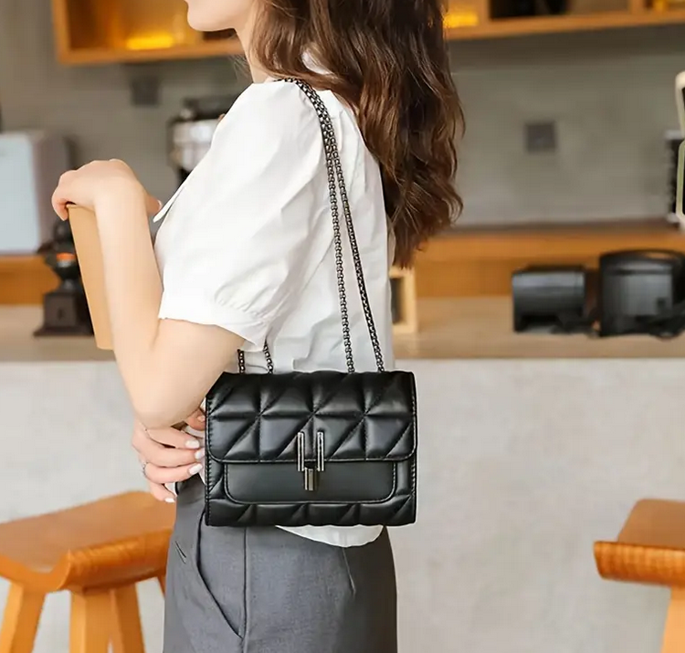 Stylish & elegant metal chain strap cross body bag, quilted textured underarm bag purse,